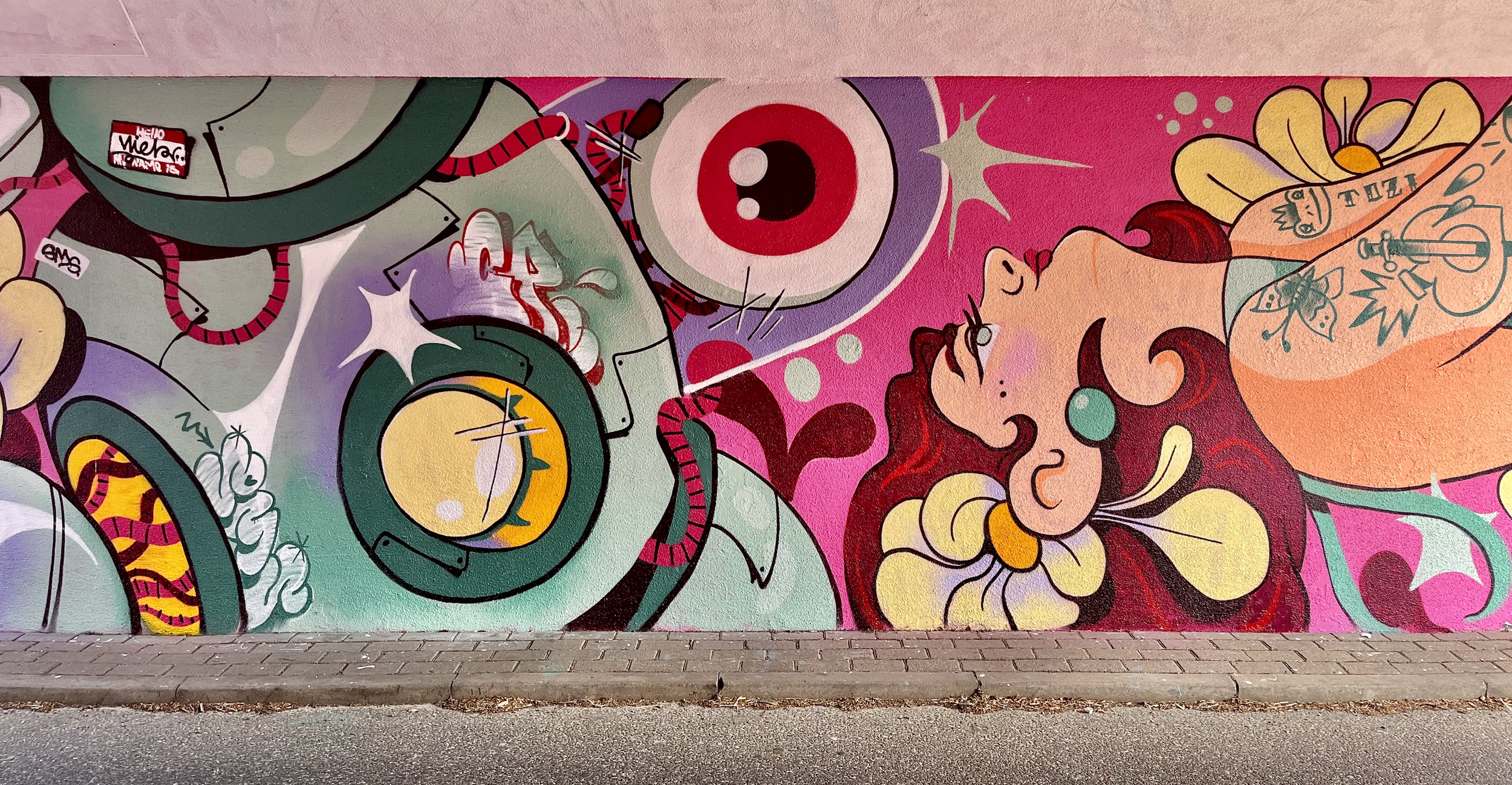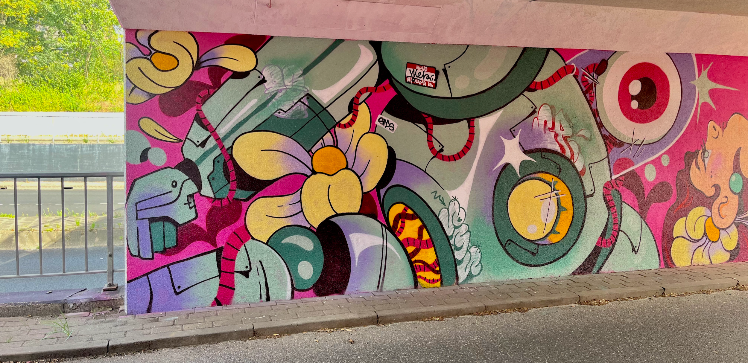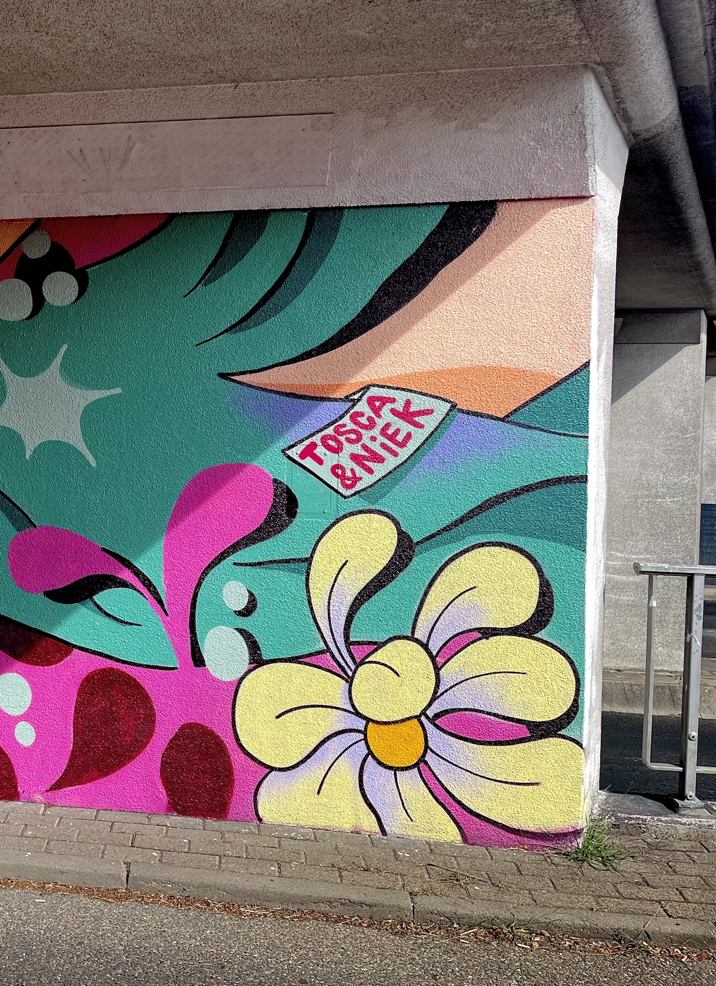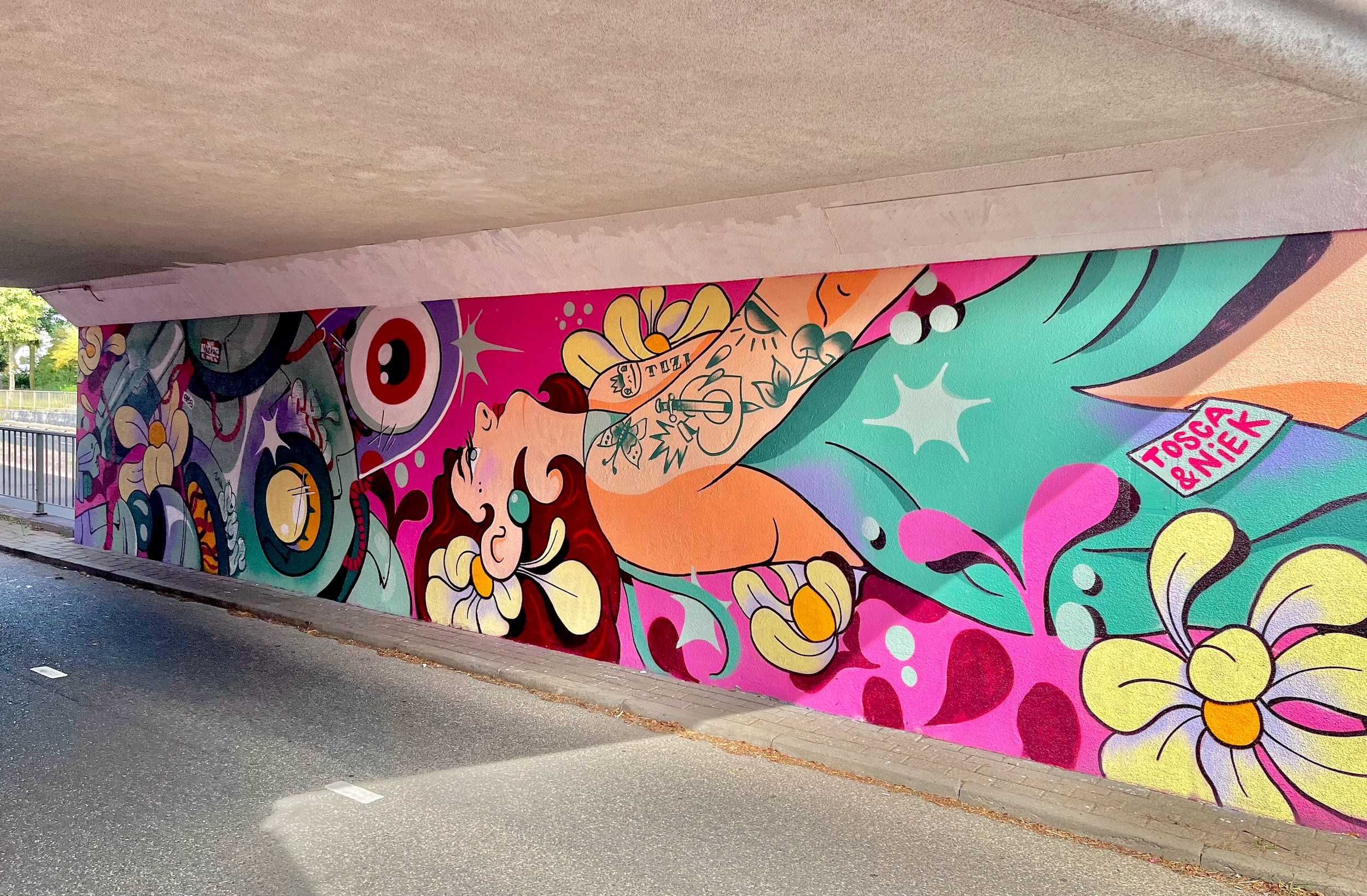 Street art festival Ede Tosca & Niek worked together on this mural in a bike tunnel for 2 days during Street art festival Ede 2025, where they painted two alter ego’s of each other.